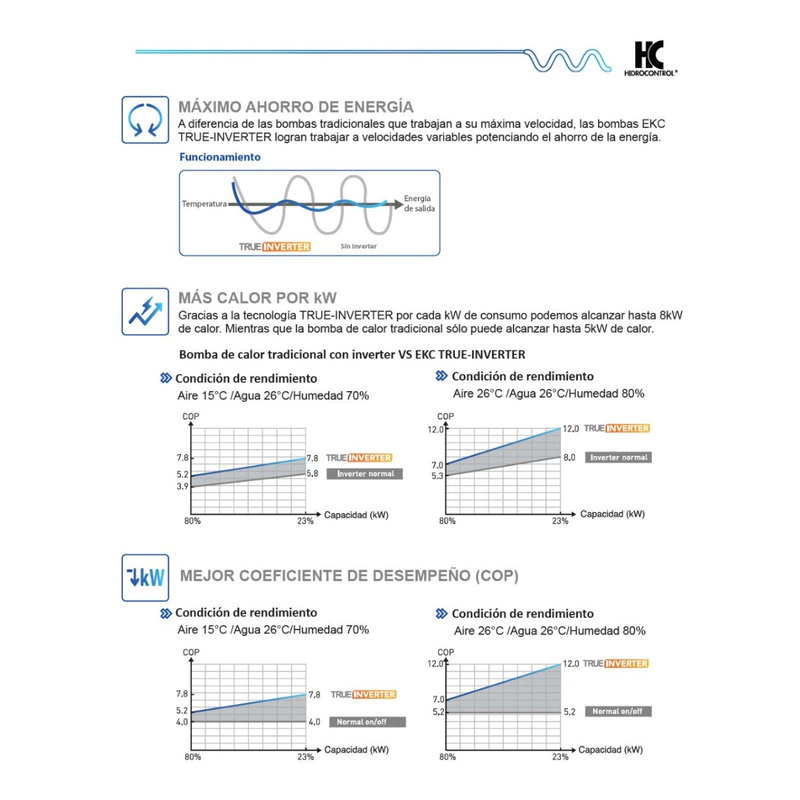 Bomba de calor con inversor para piscinas, HIDROCONTROL, serie EKC TRUE INVERTER, 140,000 BTU, 1 Fase, 230 Volts