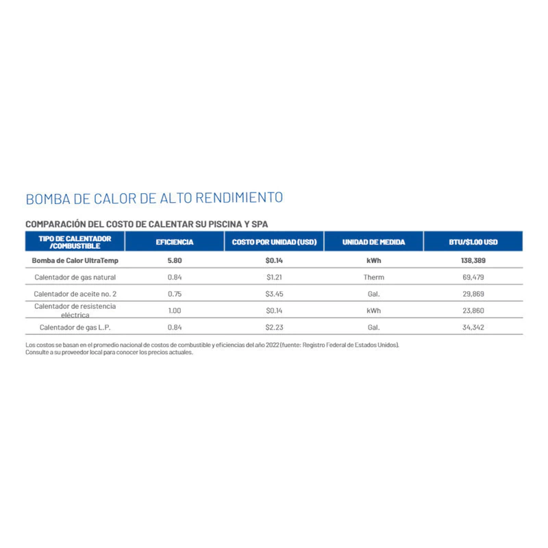 Capacidad de calentamiento: 140,000 BTU/HR