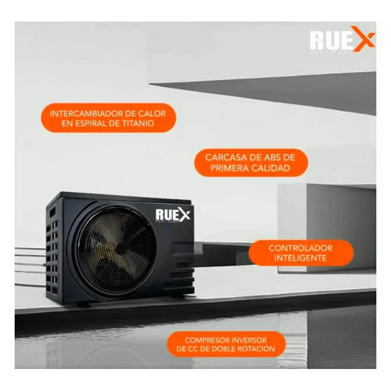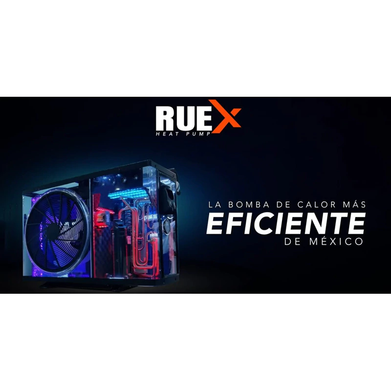 Súper Eficiente Tecnología de RUEX Heat Pump, Cuenta con una válvula de Expansión Electrónica que proporciona un índice COP 20% superior a los sistemas de expansión convencionales.