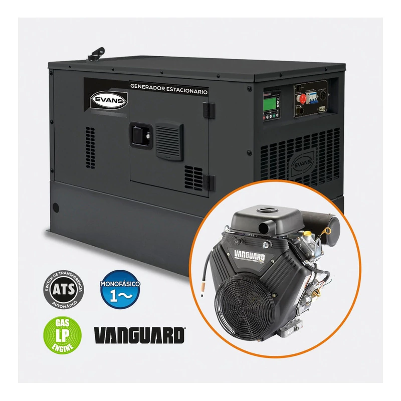 Generador Evans 10kW Acústico Motor Gas LP Vanguard 23HP